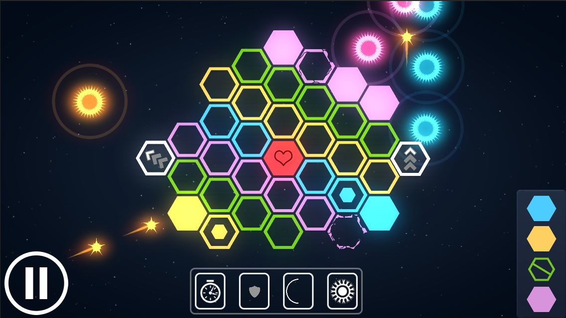 Lunaform is a puzzle arcade game like breakout, but instead of destroying all of the blocks your trying to fill them up. Swap the hexes just in time to catch stars of the same color, and fill up the grid to complete the level. Sounds easy at first, but later on increasingly complex star patterns emerge, and the hex grid gets larger as you work on harder planets. Your goal is to finish constructing the solar system by building each planet, accomplished by beating each level.