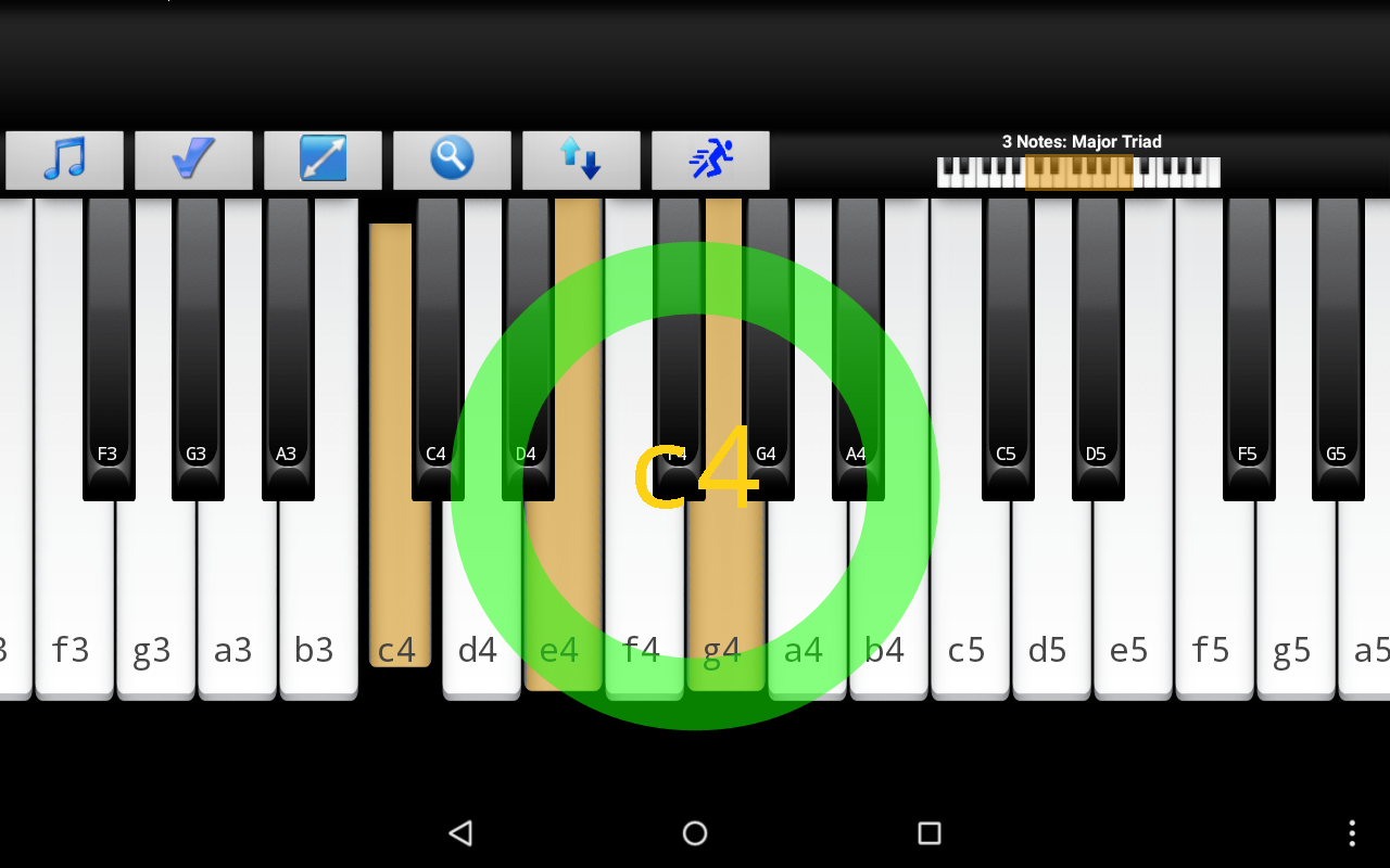 The piano keys highlight showing which note you should sing and which pitch you are correctly singing.